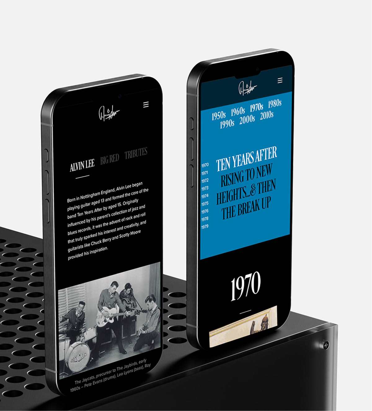 Alvin Lee, the legendary guitarist known for his lightning-fast riffs, left an enduring mark on music history and had a pivotal role in British blues-rock. At Engage Convert, I led the design of a website that celebrates his life, music, and legacy. A powerful tribute inviting fans to relive his remarkable journey.