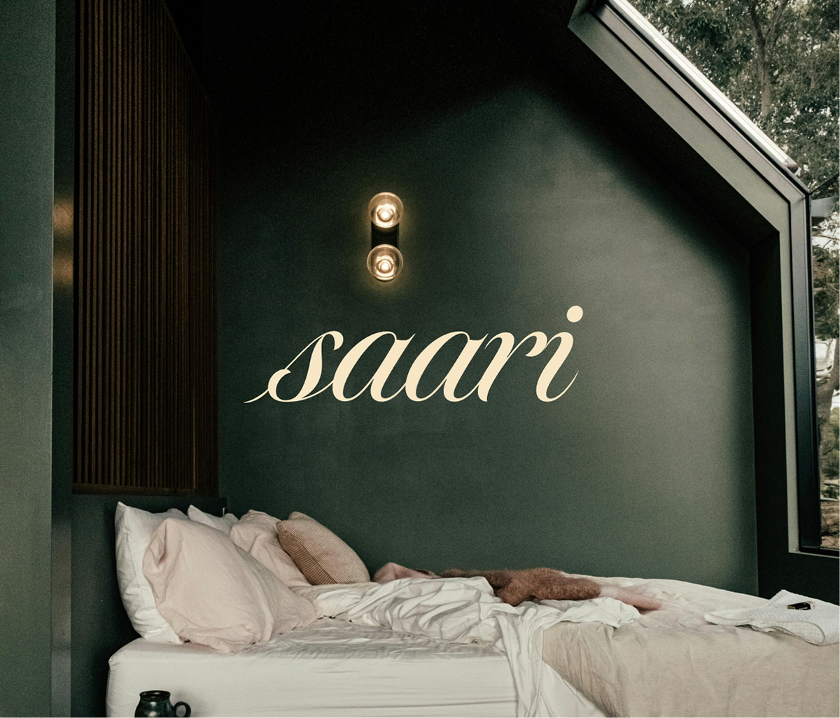 The name Saari, meaning "island" in Finnish, was chosen for its quiet elegance, evoking a sense of seclusion and calm. The wordmark reflects this tone: refined and understated, with a gentle slant that suggests movement and a subtle connection to the natural world.